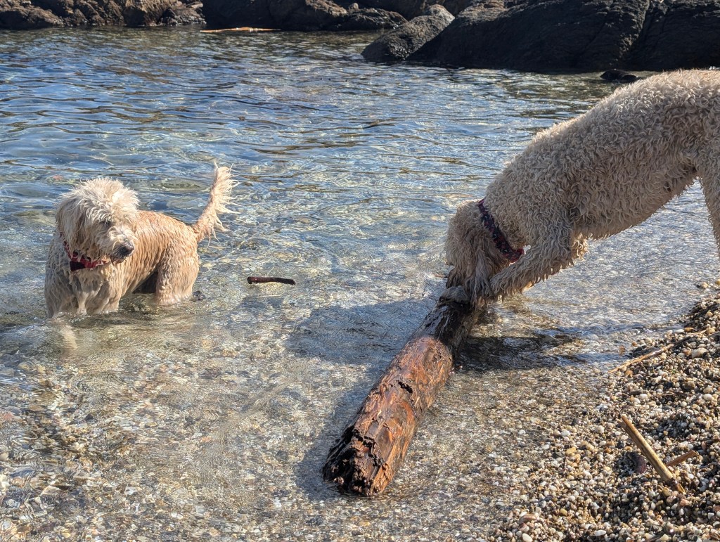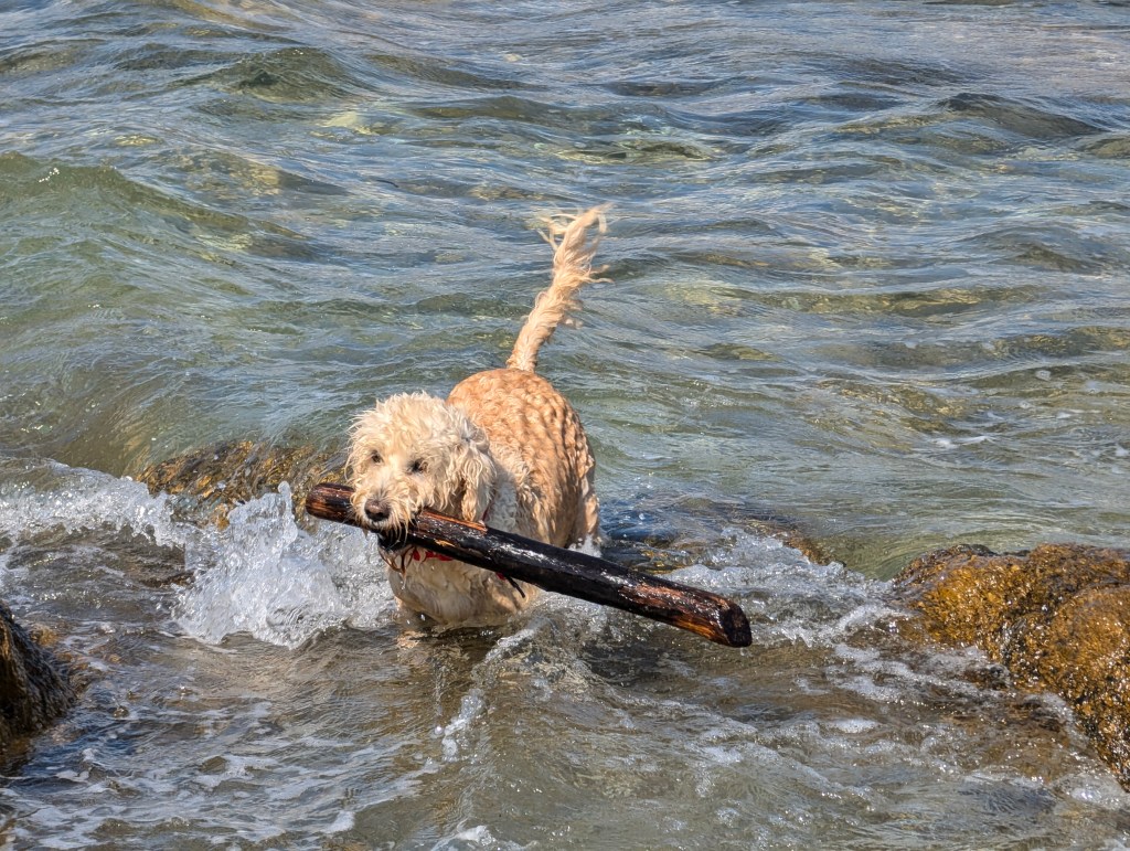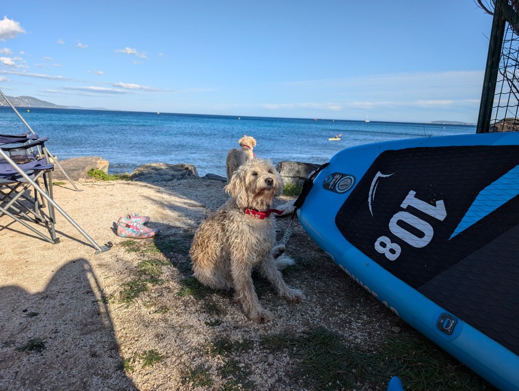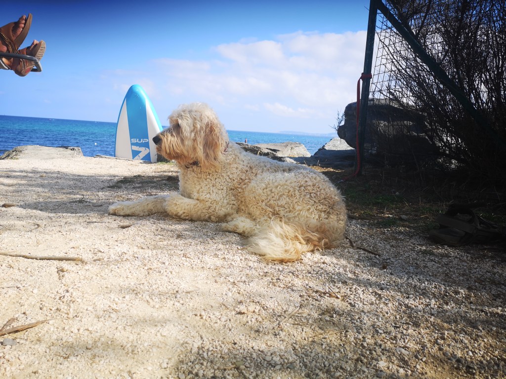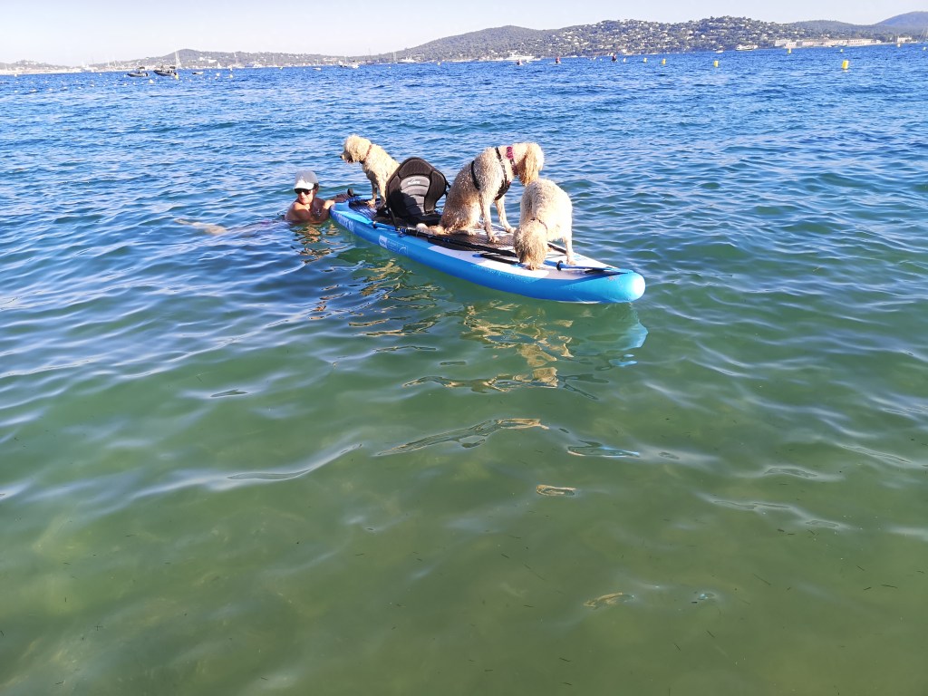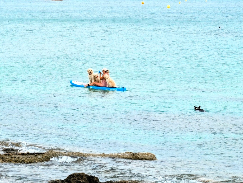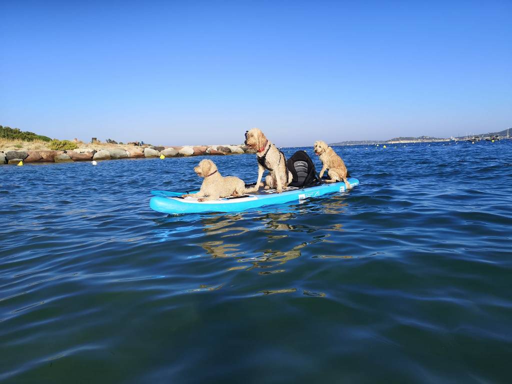 We’ve created a “monster”! That monster being while we and our Golden Doodles are on holiday…. we introduced the dogs to stand up paddle boarding. As a result, they love it. We can’t let the dogs anywhere near a paddle board without them wanting to climb aboard. Once afloat, we have to use all the tricks in the book to get them off it.